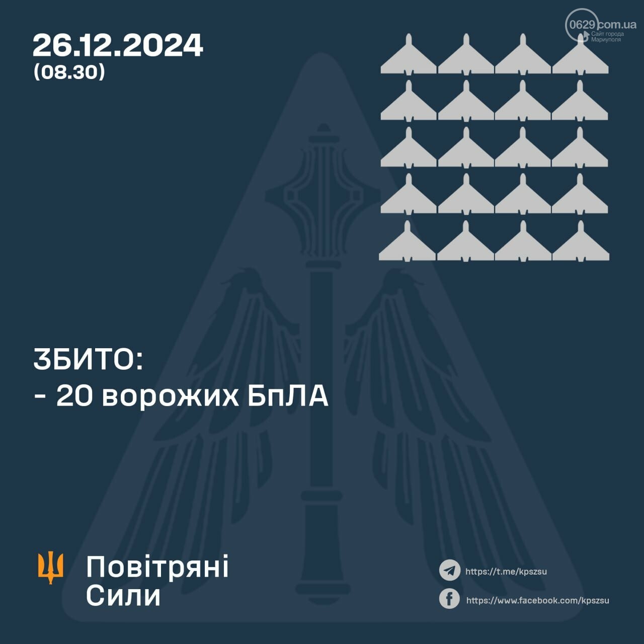 По состоянию на 08.30 подтверждено избиение 20 ударных БПЛА типа Shahed и беспилотников других типов в Харьковской, Киевской, Черниговской и Днепропетровской областях.