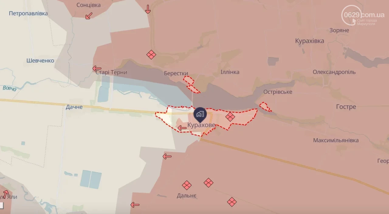 По данным DeepState, враг оккупировал Украинку, а также продвинулся в Даченском, Курахово, Лисовке, возле Песчаного, Нововасиловки, Новоелизаветовки, Солнцевки. Уточнен район возле Ровнополья.