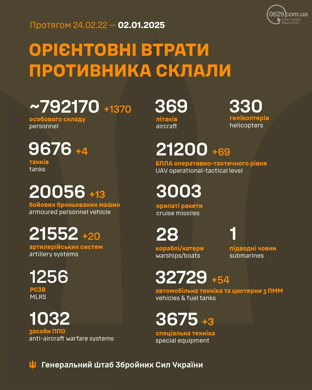 Сегодня 2 января 2025г. Война продолжается. Сегодня уже 1044 сутки полномасштабного российского вторжения.
