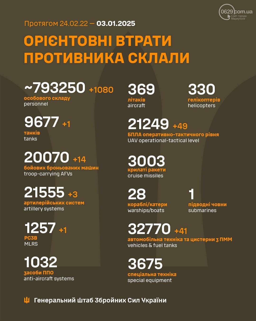 Сегодня 3 января. Продолжаются 1045 сутки полномасштабного российского вторжения.
