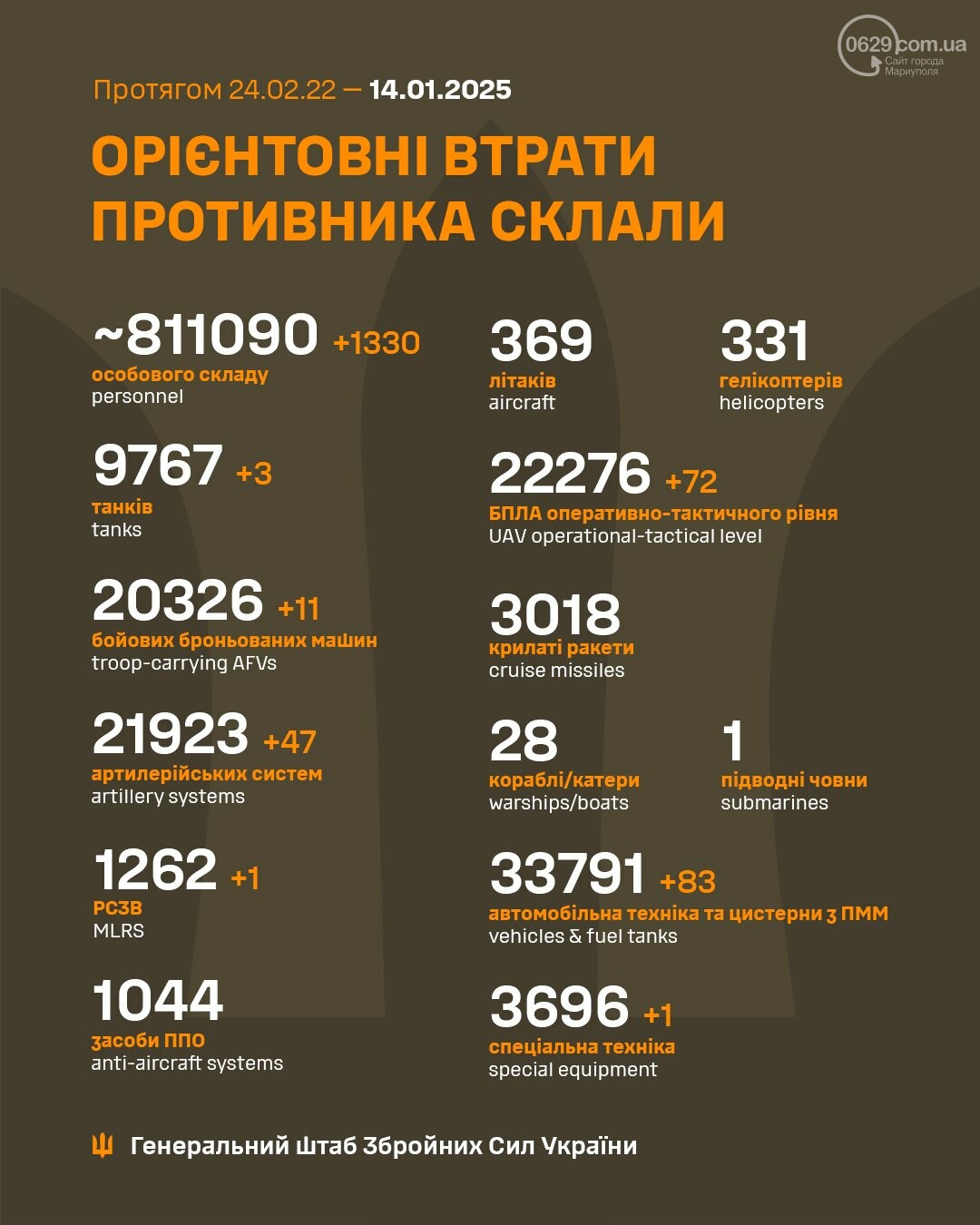 Сегодня 14 января. Продолжаются 1056 сутки полномасштабного российского вторжения.