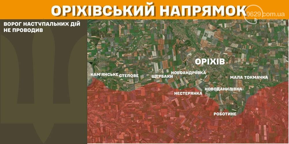 На Северском, Гуляйпольском, Ореховском и Приднепровском направлениях прошедших суток противник штурмовых действий не проводил.