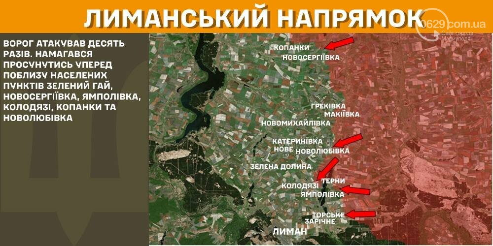 На лиманском направлении враг атаковал десять раз. Пытался продвинуться вперед вблизи населенных пунктов Зеленая Роща, Новосергеевка, Ямполевка, Колодцы, Копанки и Новолюбовка.