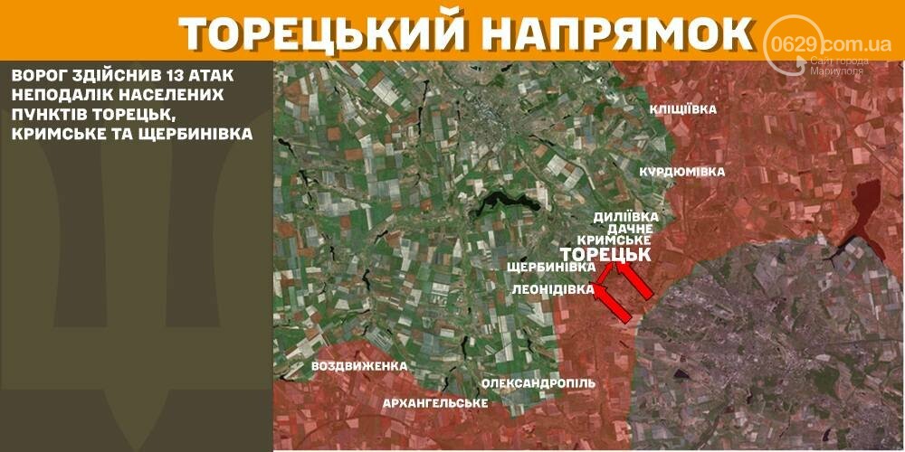 На Торецком направлении враг совершил 13 атак неподалеку от населенных пунктов Торецк, Крымское и Щербиновка.