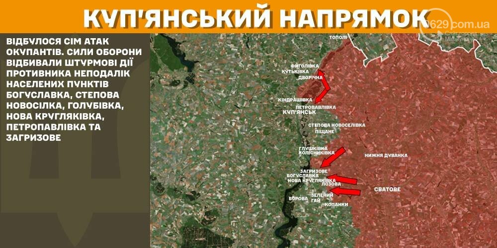 На Купянском направлении за прошедшие сутки произошло семь атак окупантов. Силы обороны отражали штурмовые действия противника неподалеку от населенных пунктов Богуславка, Степная Новоселка, Голубовка, Новая Кругляковка, Петропавловка и Загрызово.
