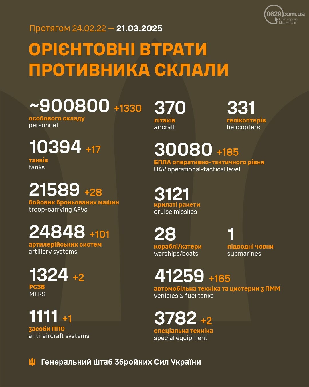 Сегодня 21 марта. Продолжаются 1122 сутки полномасштабного российского вторжения.