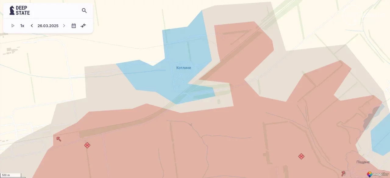 Об этом в четверг, 27 марта, сообщил аналитический ресурс DeepState.