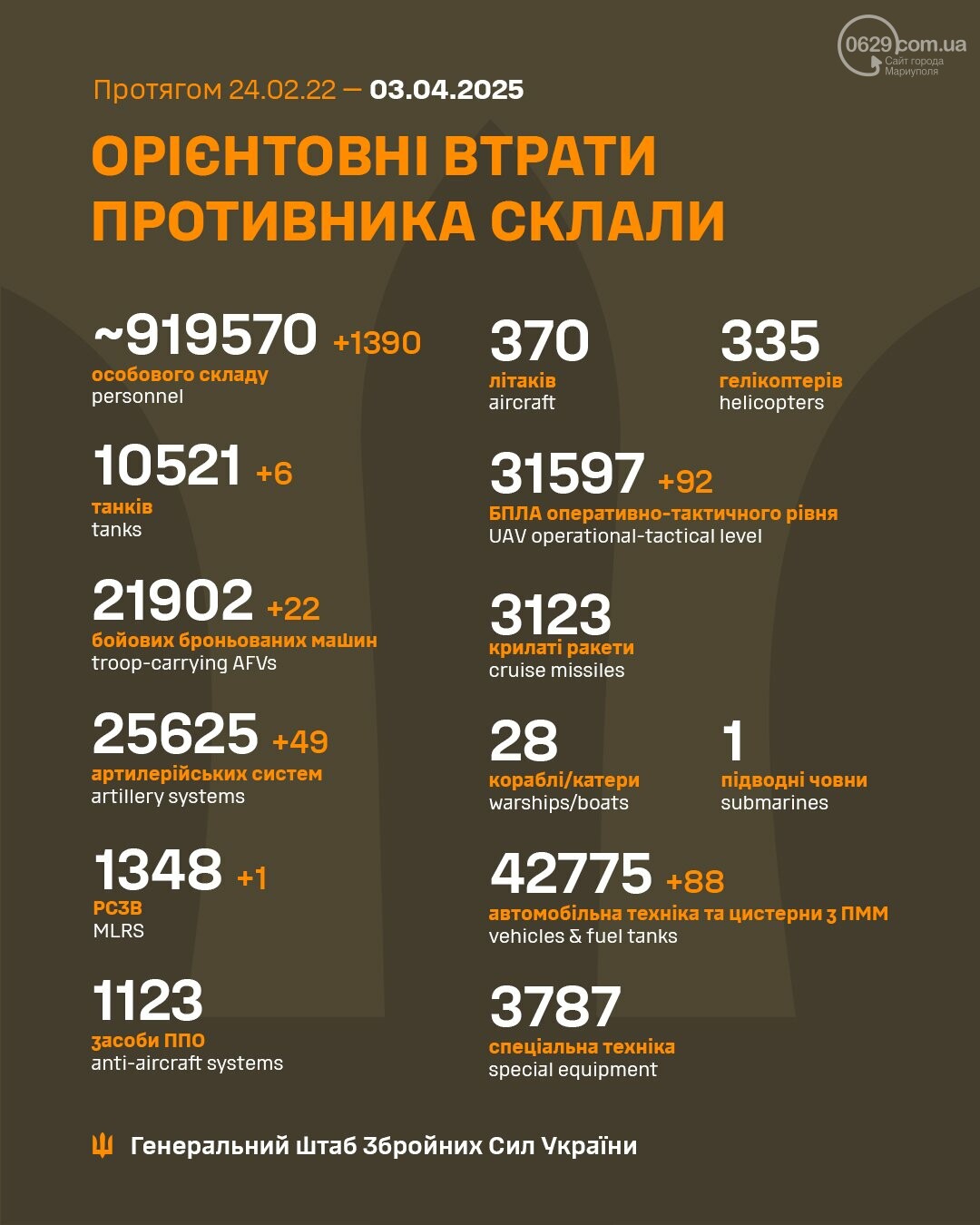 Сегодня 3 апреля. Продолжаются 1135 сутки полномасштабного российского вторжения.