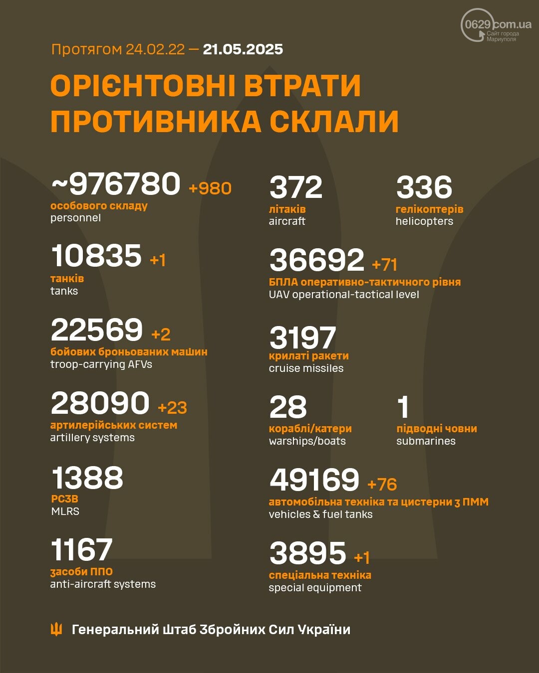 Сегодня 21 мая. Продолжается 1183 день полномасштабного русского вторжения.