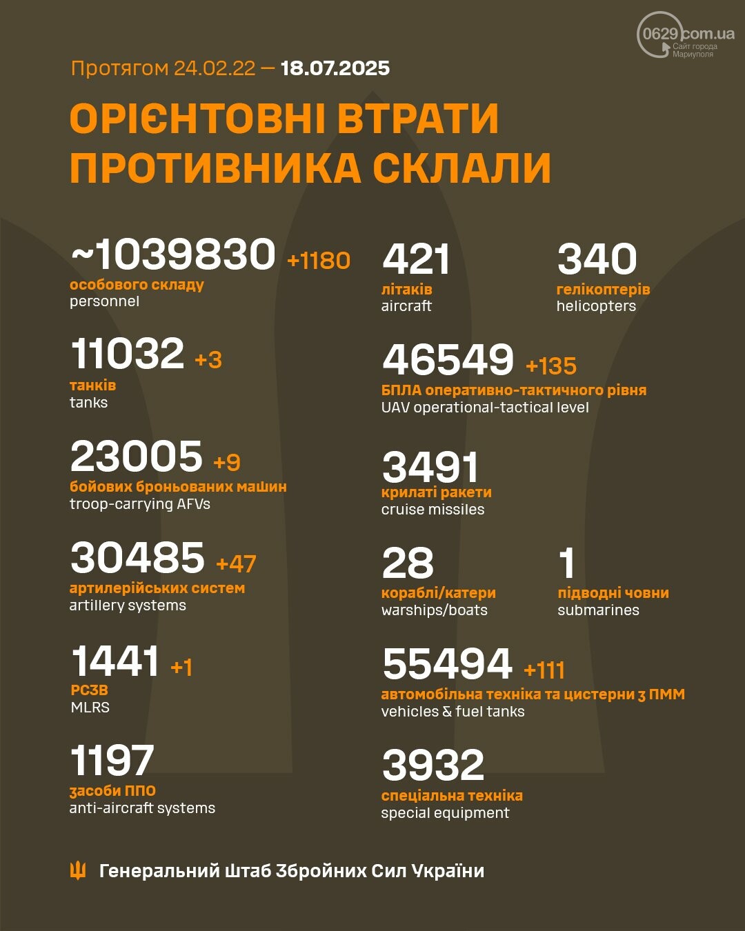 Сегодня – 18 июля. Продолжаются 1241 сутки полномасштабного российского вторжения.