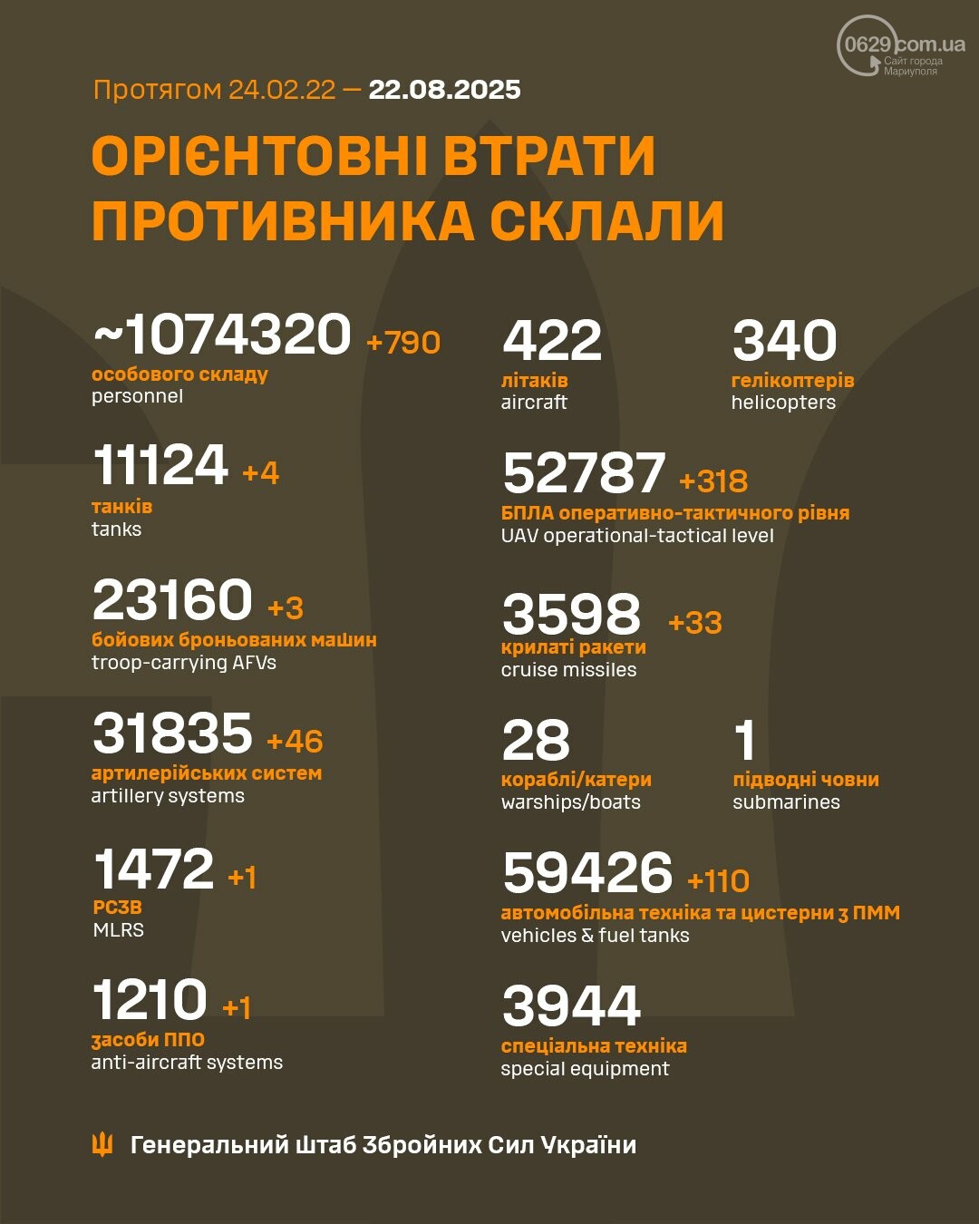 Сегодня 22 августа. Продолжаются 1276 сутки полномасштабного российского вторжения.