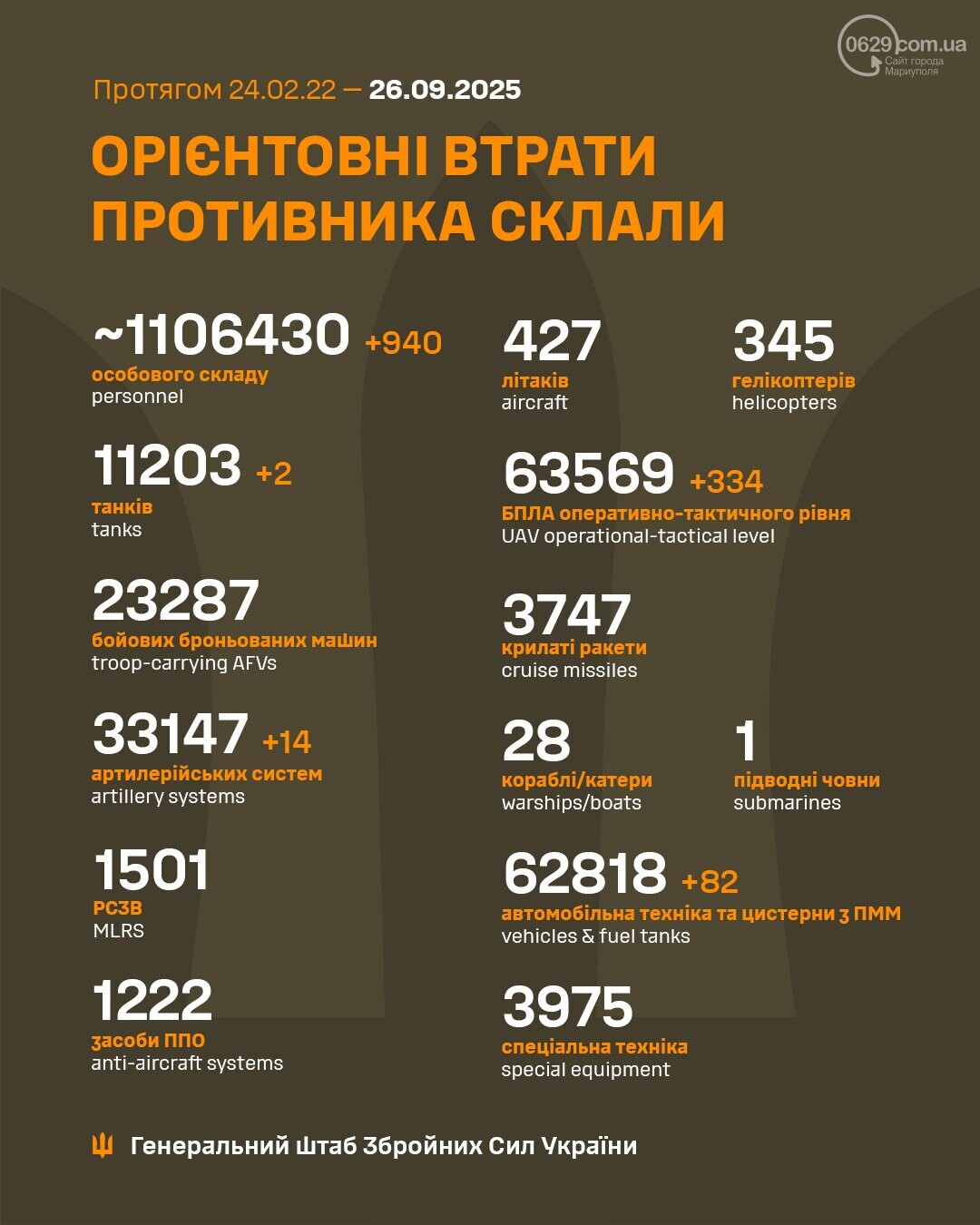 Сегодня 26 сентября. Продолжаются 1311 сутки полномасштабного российского вторжения.