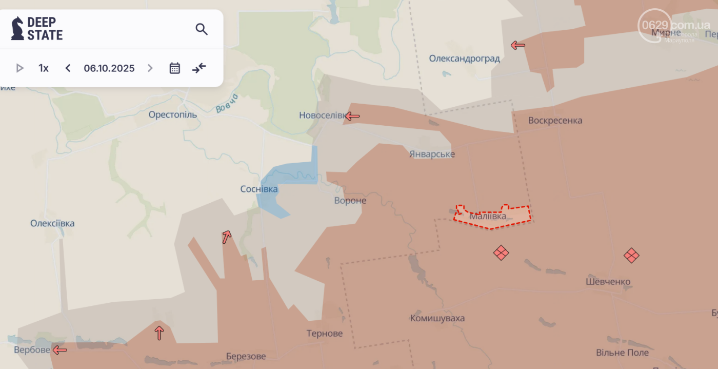 По информации DeepState , враг оккупировал Малиевку Днепропетровской области, а также продвинулся вблизи Новоивановки, Вороного, Охотничьего и Белой Горы.
