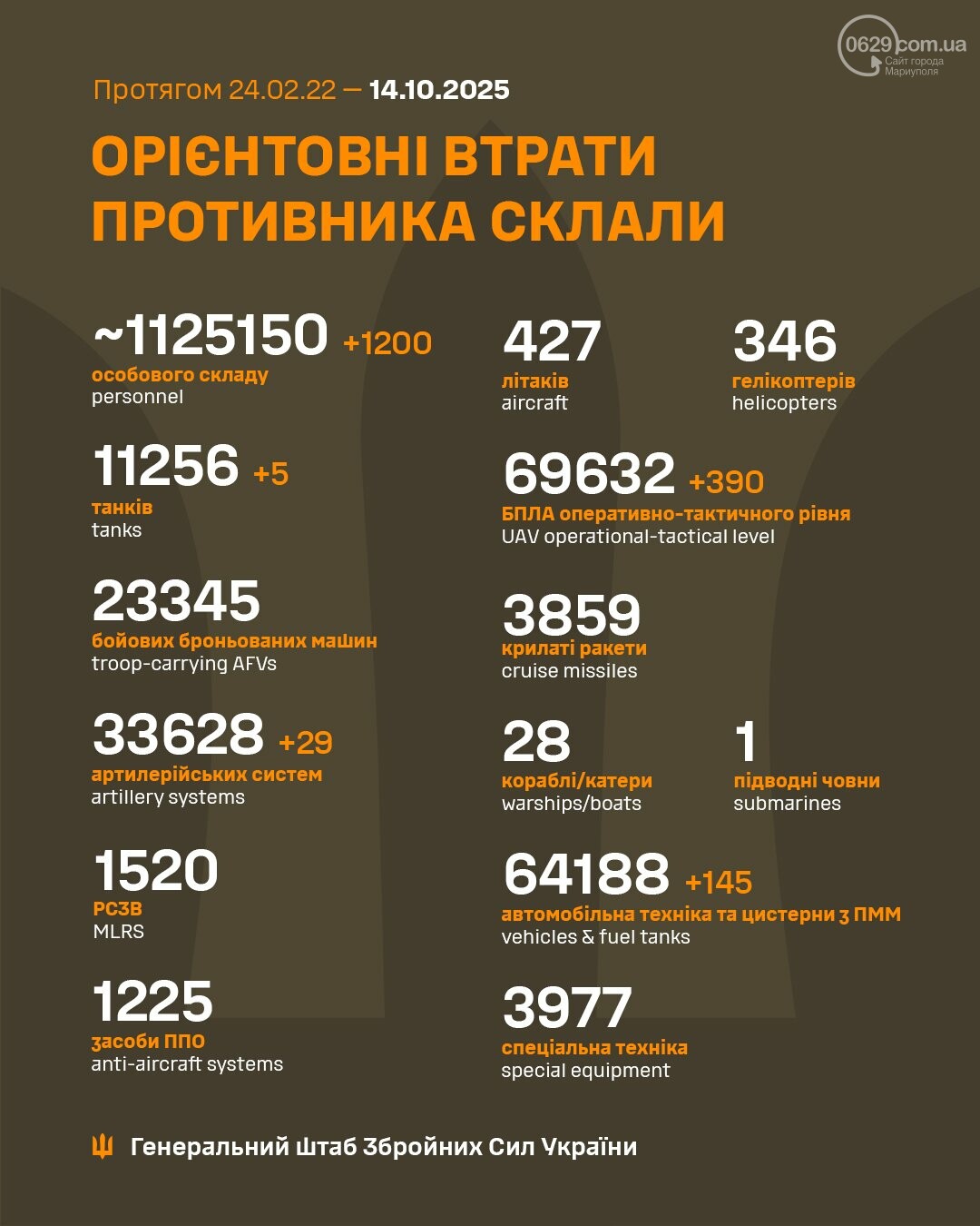 Сегодня 14 октября. Продолжаются 1329 сутки полномасштабного российского вторжения.