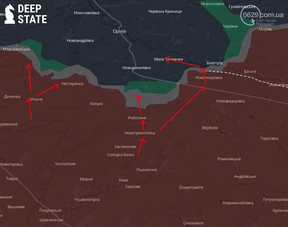 Враг активизировался на юге, совершив механизированные штурмовые действия, сообщает DeepState . Россияне в течение прошедшего дня провели ряд штурмовых действий по отрезку Щербаки-Нестерянка-Роботино-Новопокровка-Малая Токмачка, используя разнообразную технику от тяжелой (в виде танков, БМП, БТР с пехотой) до мотоциклов, которые также пытались на скорости заехать как можно дальше в глубину оборонных борон.