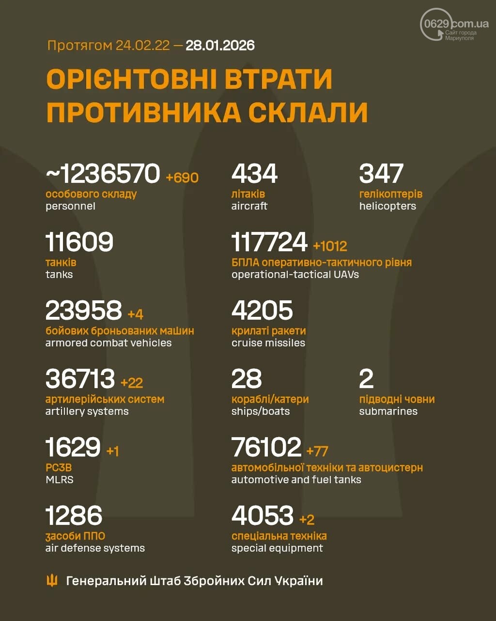 Сегодня 28 января. Продолжается 1435 сутки полномасштабного российского вторжения.