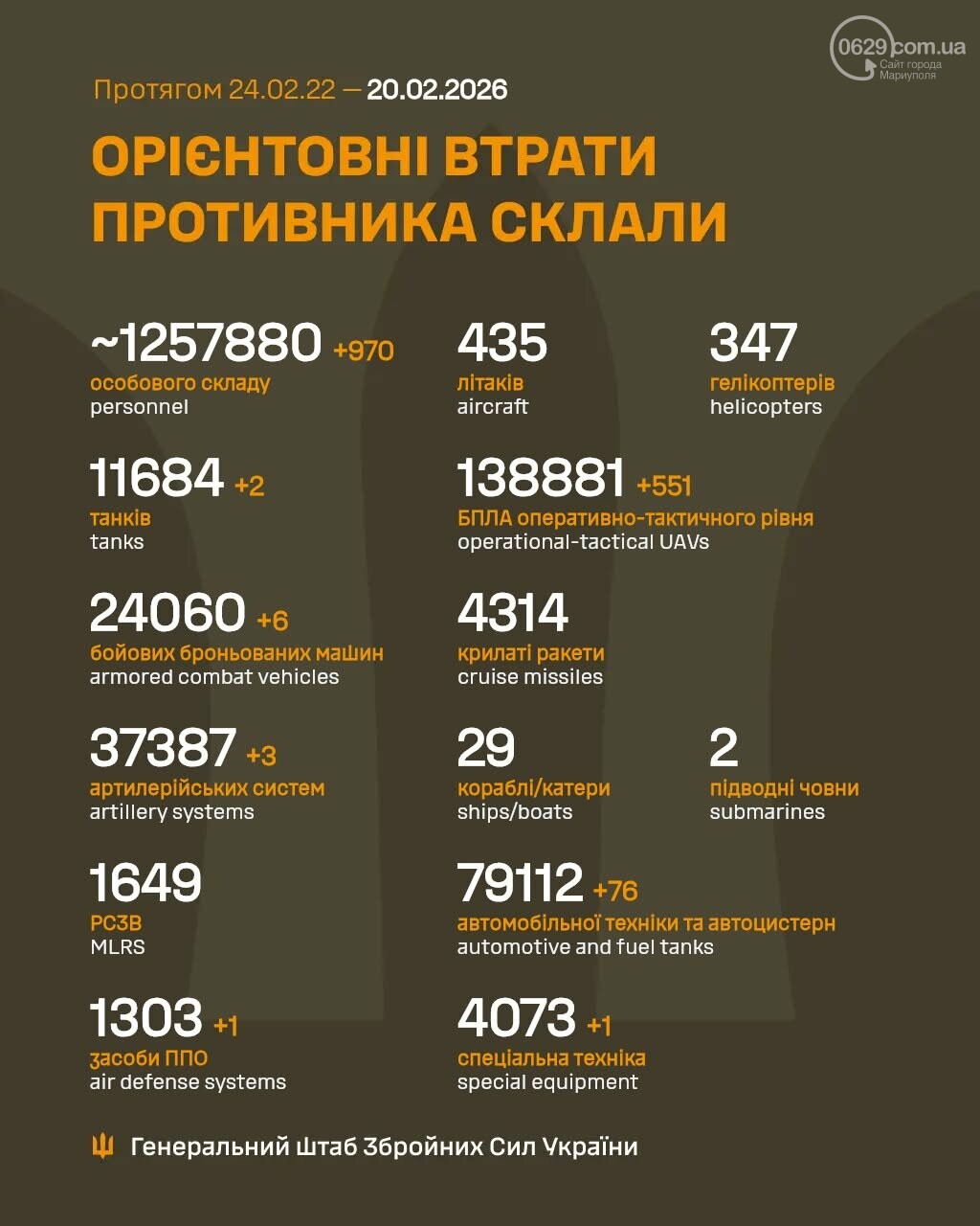 Сегодня 20 февраля. Продолжаются 1458 сутки полномасштабного российского вторжения.