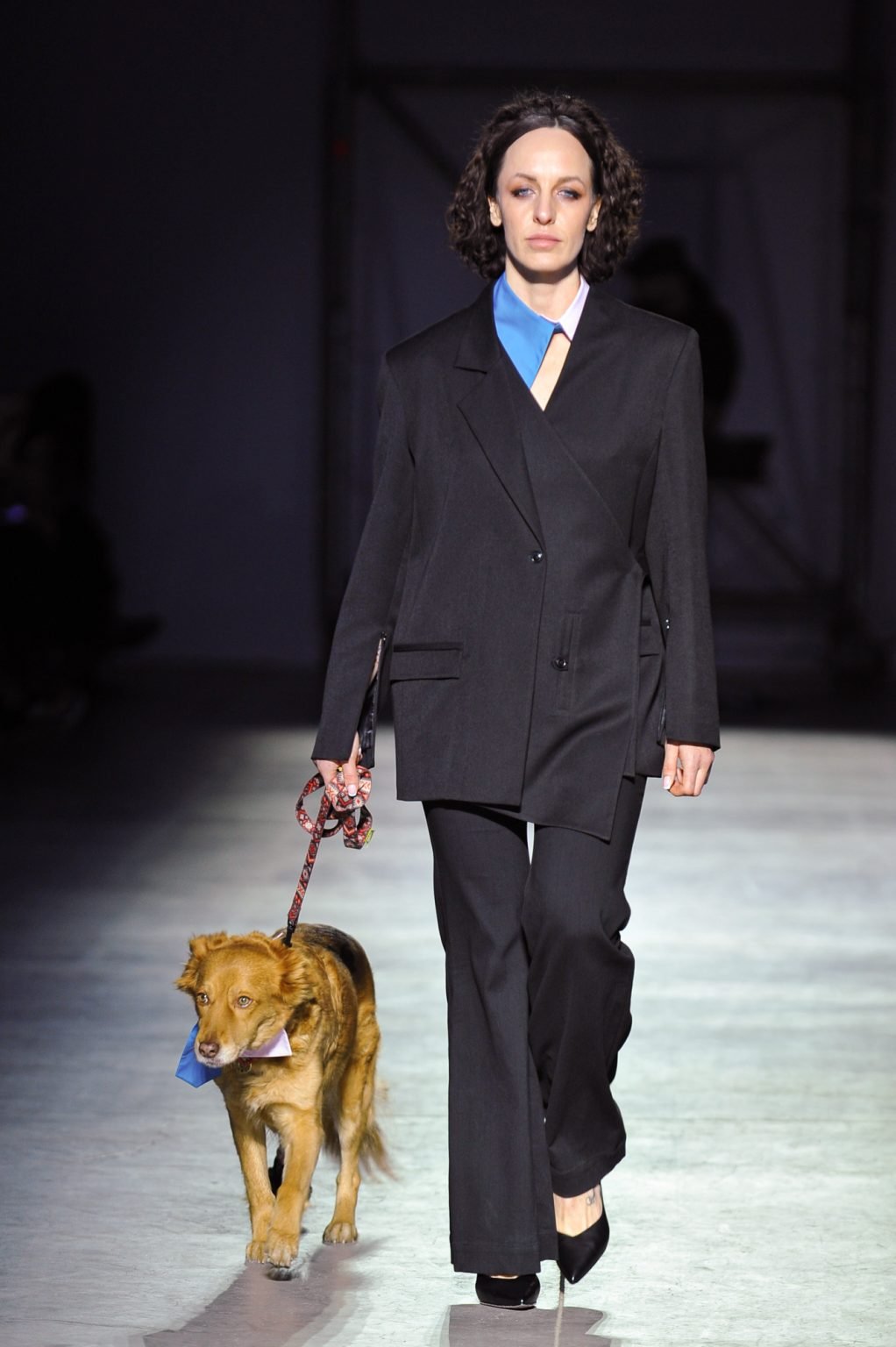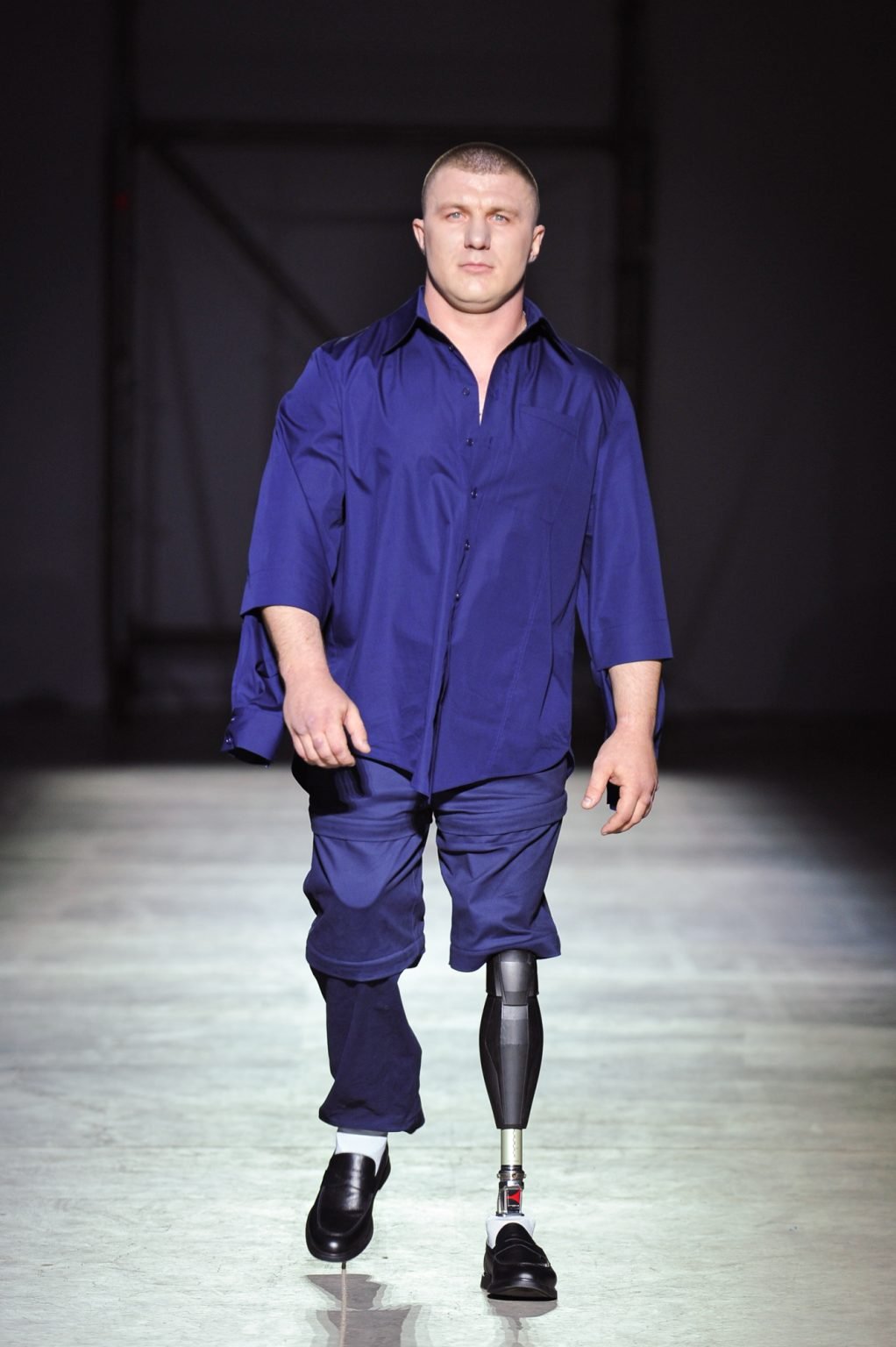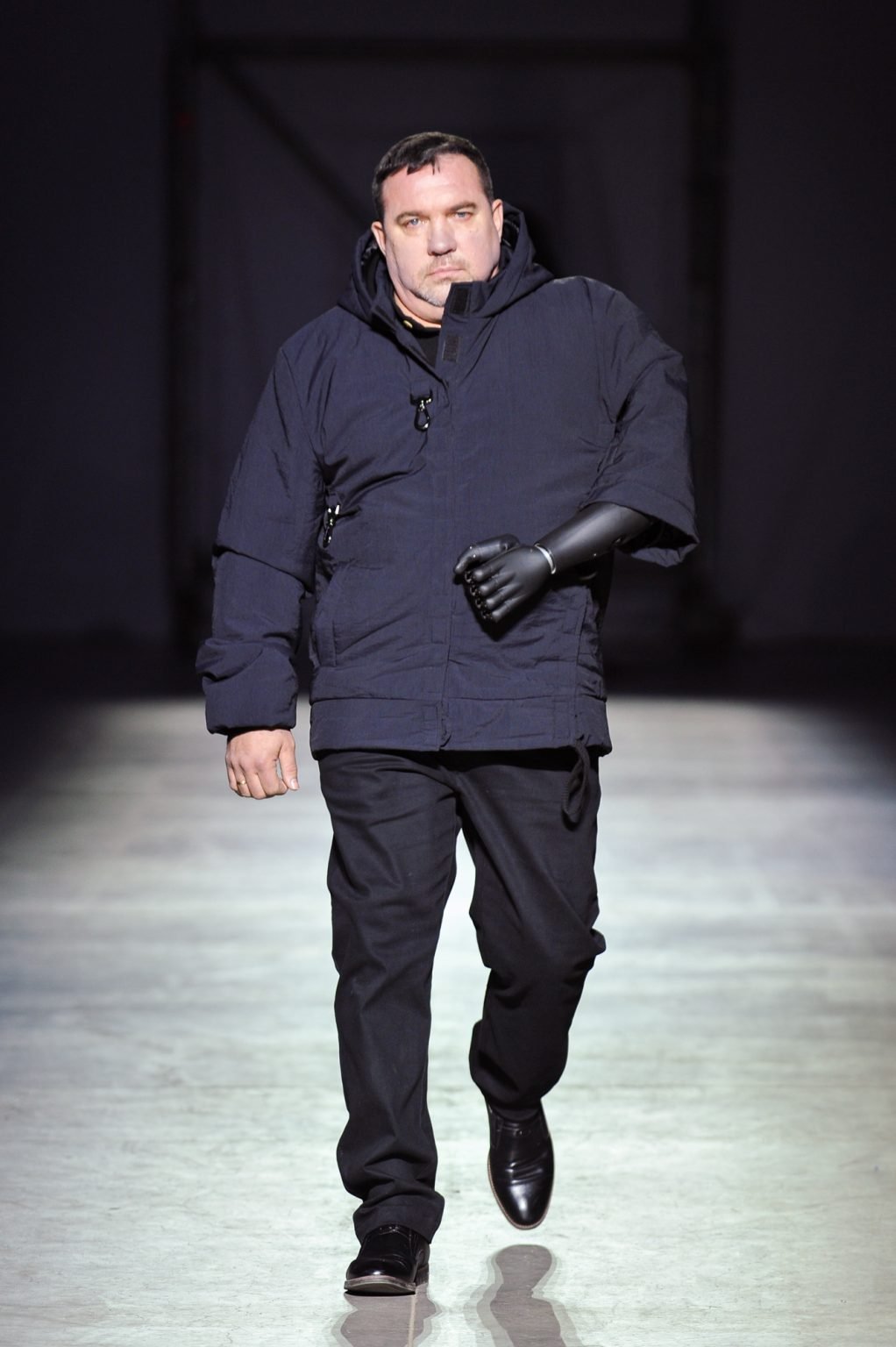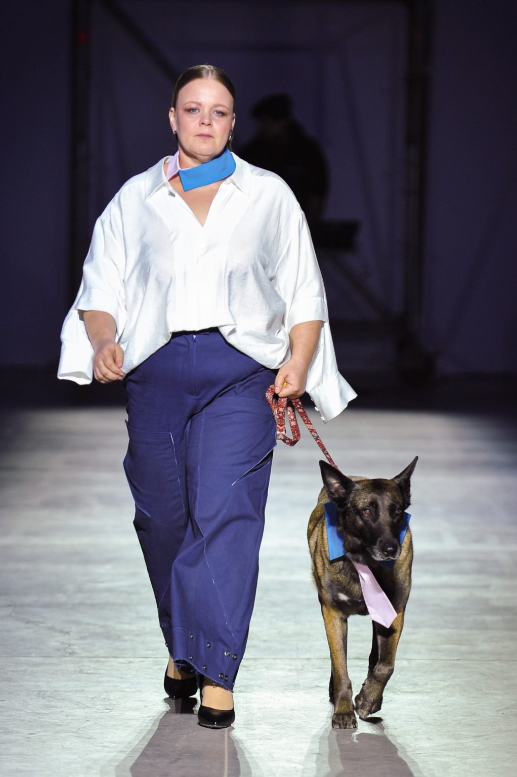 На подиуме вместе с профессиональными моделями коллекцию представляли ветераны и ветеранки русско-украинской войны. Также в показе участвовали собаки психологической поддержки.