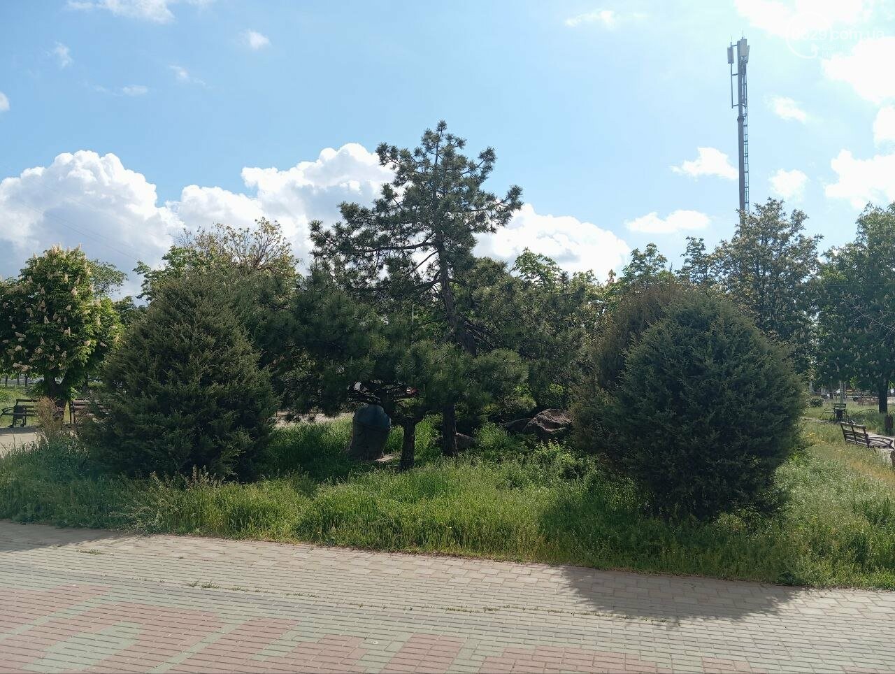 Кроме разбитых обломками российских ракет скульптур, в парке исчезла часть скамеек.