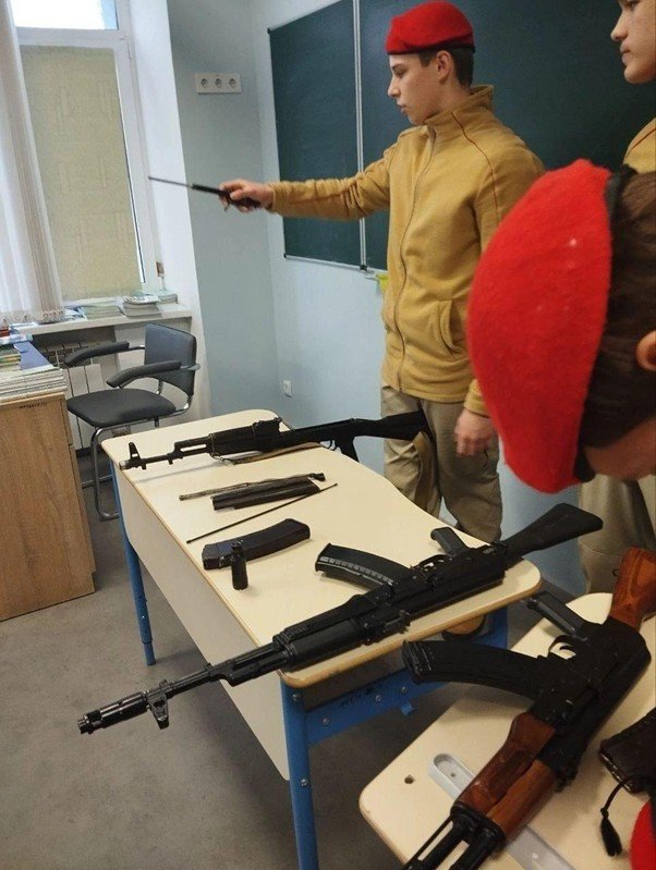 В феврале 2024 года российская «Юнармия» пришла к детям прямо в класс с автоматом Калашникова. Активисты в советской форме показывали оружие, учили разбирать-собирать, а параллельно – агитировали вступать в юнармейское движение.
