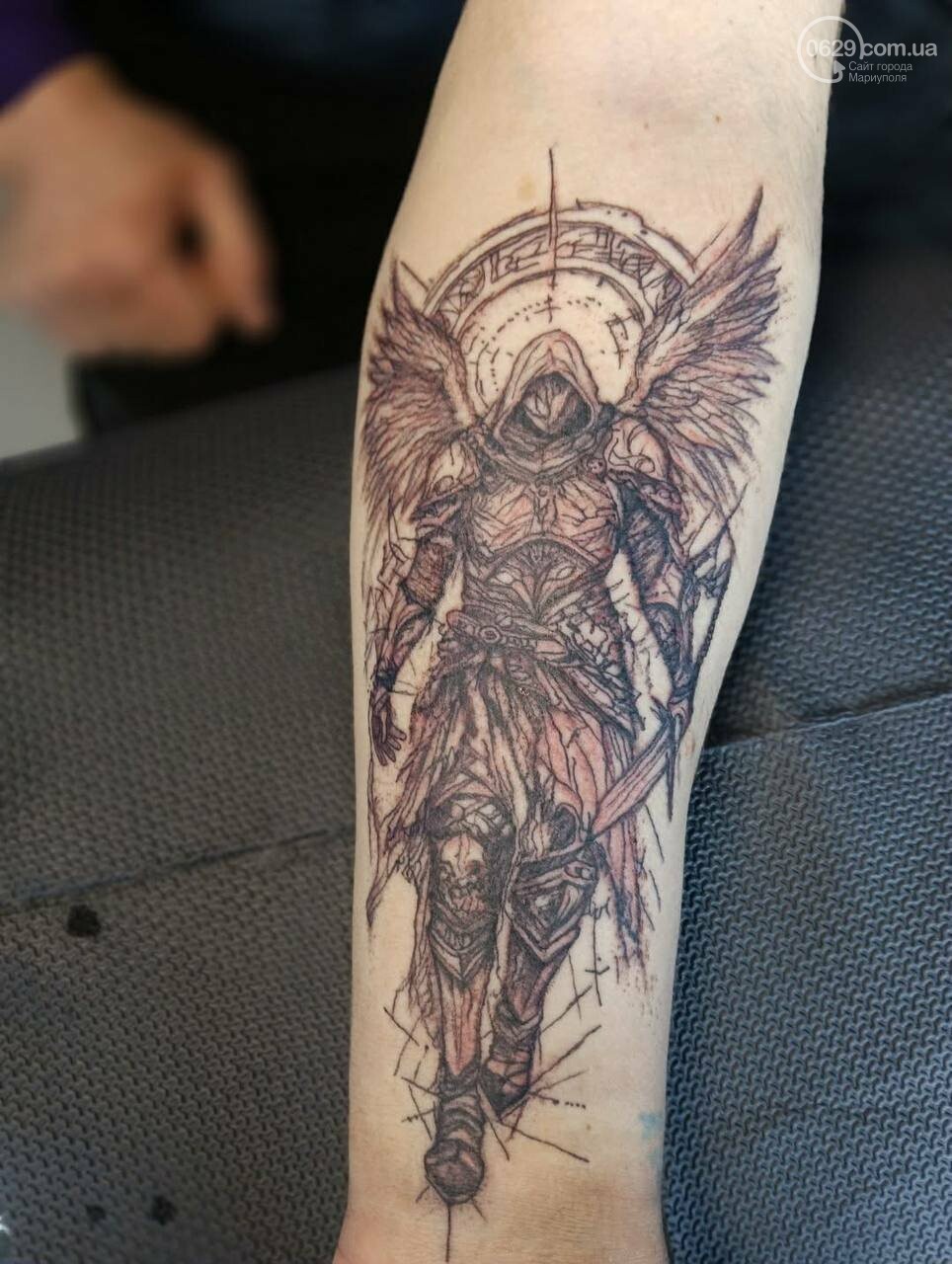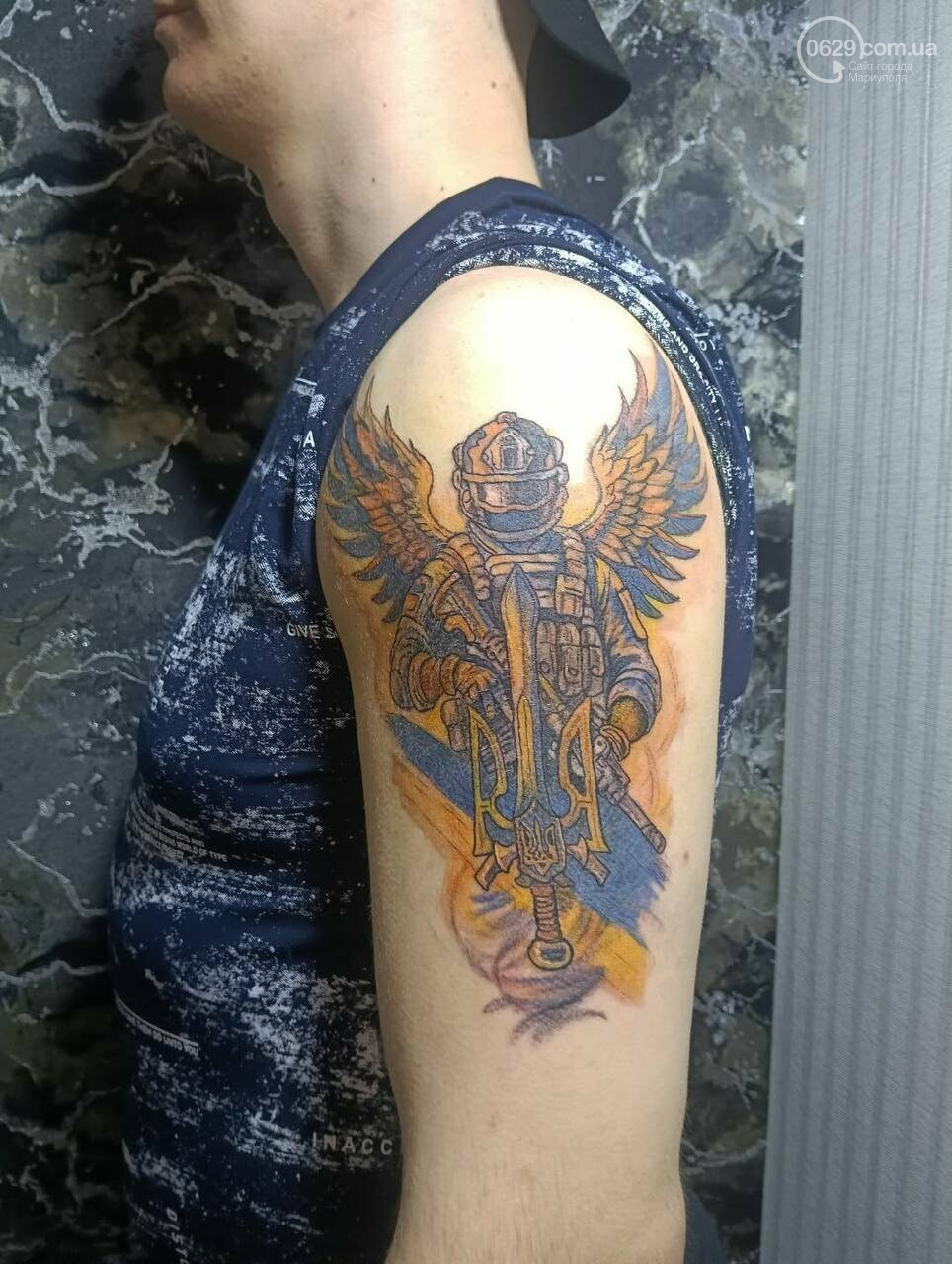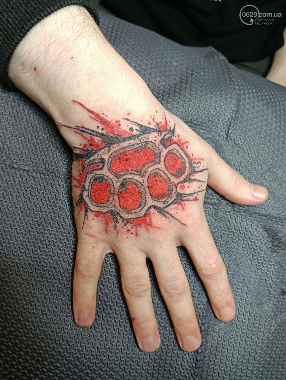 Например, недавно освобожденный из плена мариуполец Евгений Юрочкин перекрывал старую татуировку новым. На войне Юрочкин был парамедиком – человеком, спасающим других бойцов. Поэтому он набил медика на поле боя, жестом одного пальца отказывающего Смерти забрать раненого с собой.