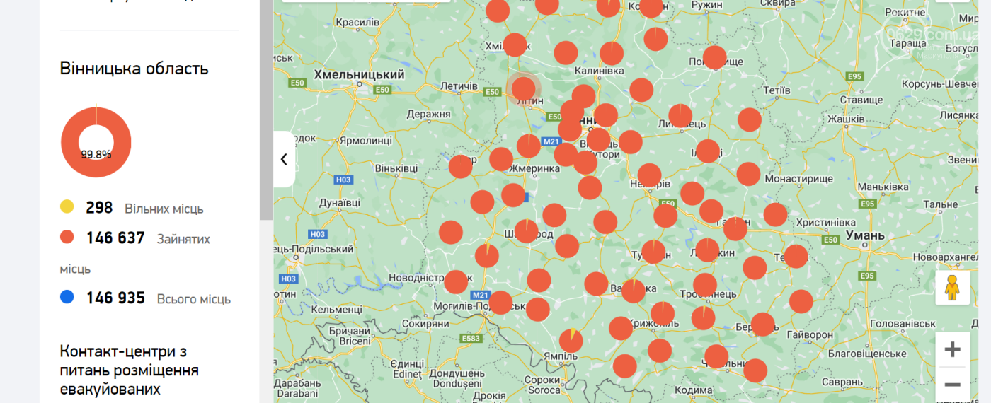 По состоянию на 7 августа на этом сервисе размещена информация о 24870 свободных мест в разных регионах Украины. В целом государство обеспечило создание почти полтора миллиона мест для проживания переселенцев.