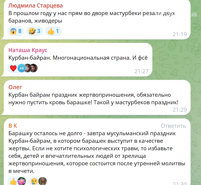 В комментариях мариупольцы написали, что это не единичный случай. Бараны блеют и возле других домов. Животных скорее всего принесут в жертву на празднике Курбан-Байрам. Это не нравится местным жителям, которые не привыкли к подобным обычаям.