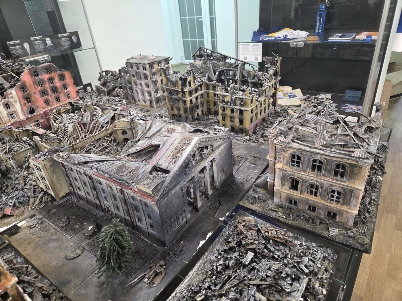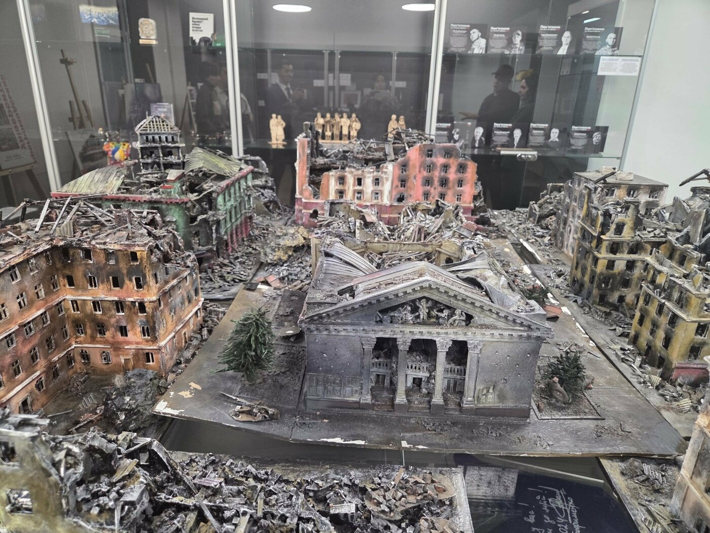 В среду, 1 октября, Мариупольский государственный университет получил особый подарок от художника Альберта-Лейзера Фельдмана – макет разрушенного центра Мариуполя. Работа стала частью его выставки «Миражи руин», посвященной украинским городам и селам, пострадавшим от полномасштабной войны.
