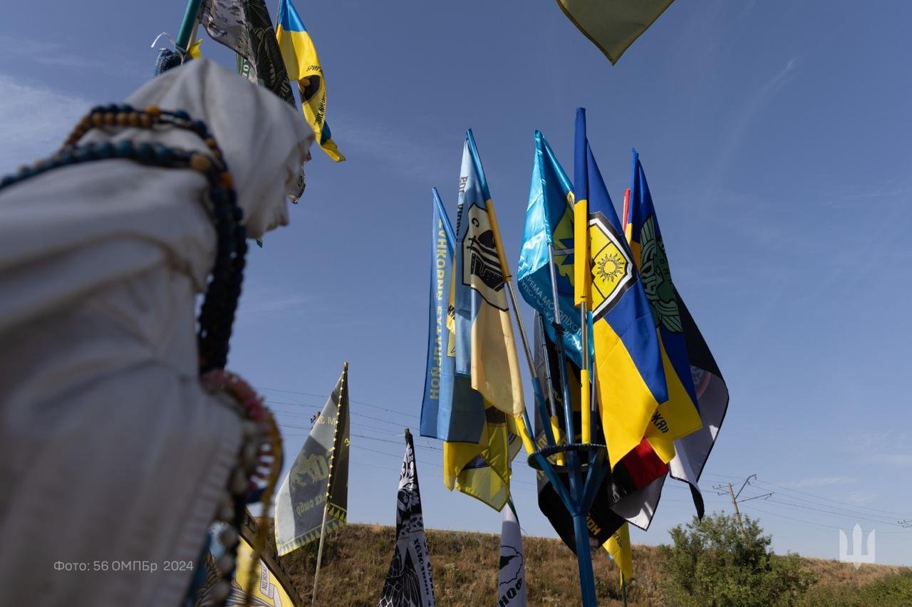 «Будете направляться в Донецкую область — остановитесь на минуту возле этих флагов, вспомните о бойцах — «мариупольцах», отдайте дань уважения их мужеству и самоотверженности! Вместе — к Победе!» — призвали военные.