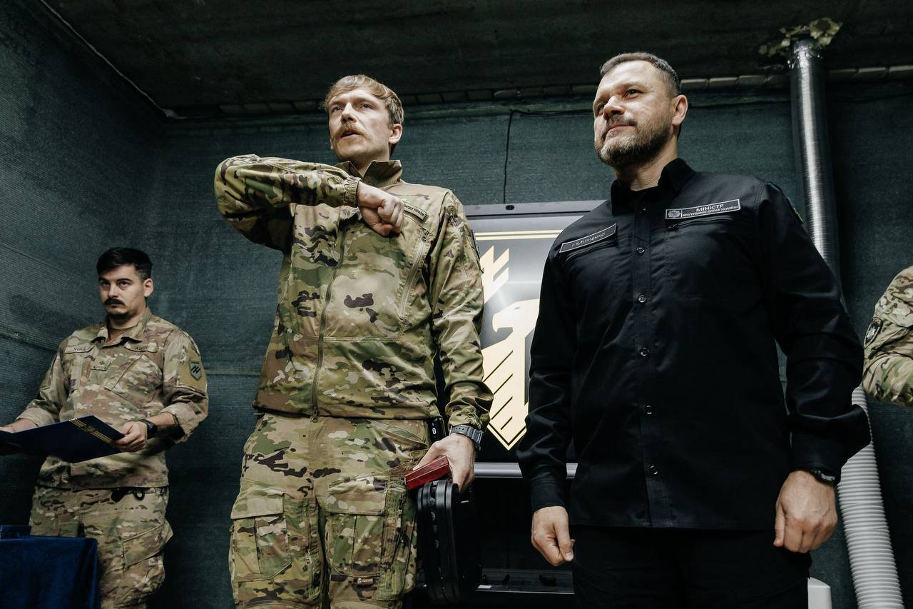 Министр внутренних дел Украины Игорь Клименко во время рабочей поездки в Донецкую область вручил Орден Богдана Хмельницкого ІІ степени командиру 1-го корпуса НГУ «Азов» Денису «Редису» Прокопенко. Это государственная награда, которую отметил Президент Украины.