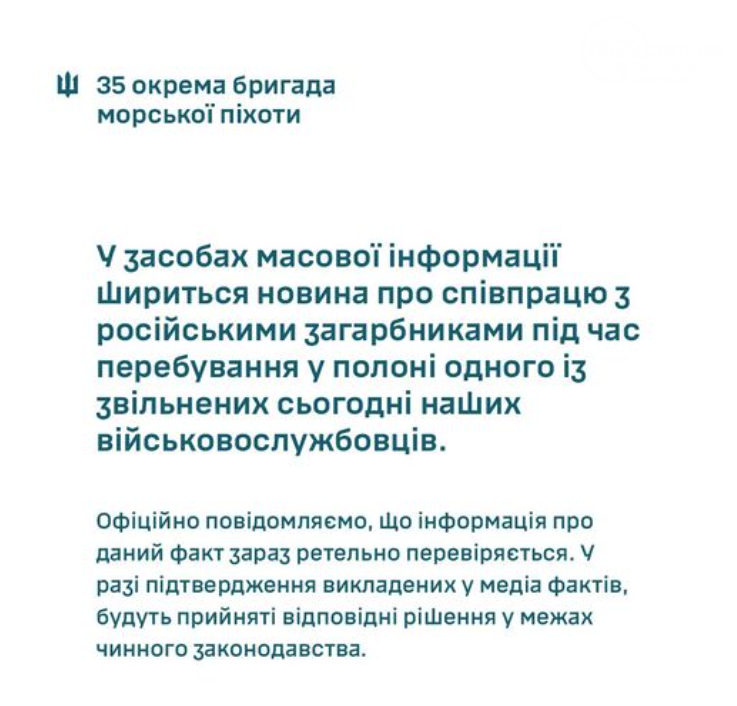 Дали официальный комментарий и в 35 отдельной бригаде морской пехоты, где служит человек, которого обвиняют в сотрудничестве с врагом.