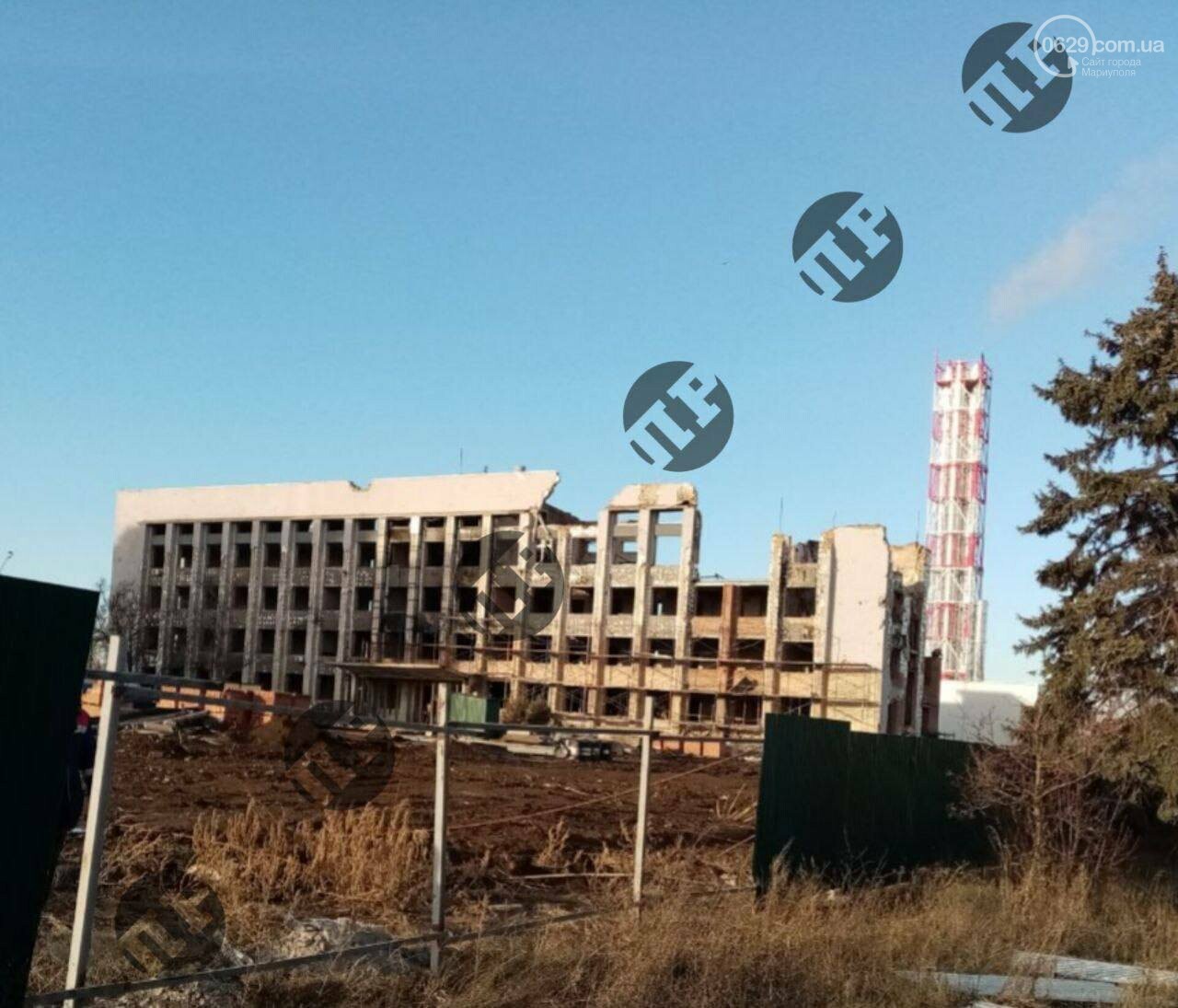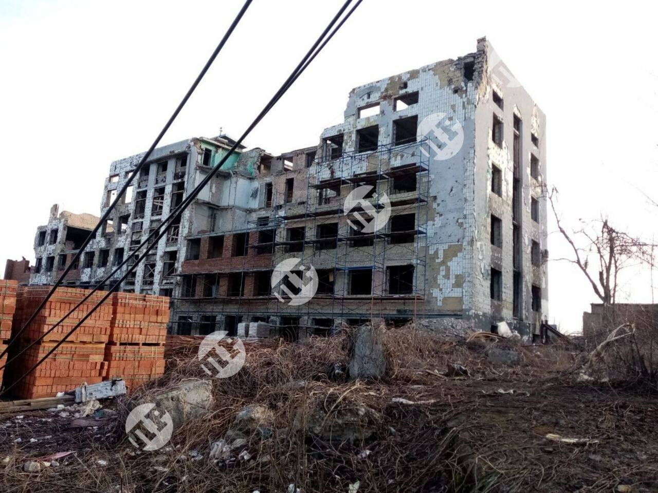 Российские захватчики приступили к ремонту разрушенного ими здания Левобережной райадминистрации во временно оккупированном Мариуполе.