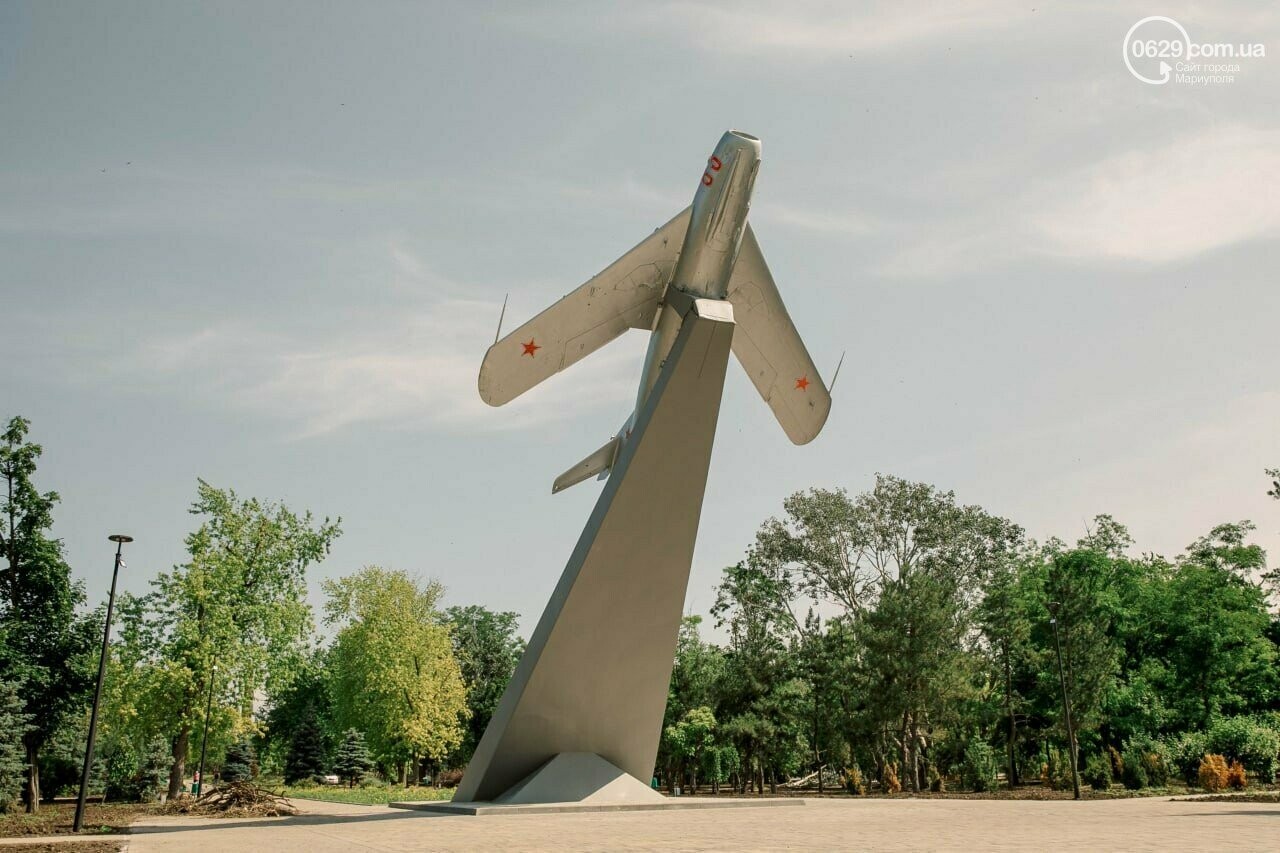 Памятник-самолет покрасили авиационной краской, чтобы он светился. Реконструировали клумбы, установили новые скамейки, высадили цветы, дополнительные деревья.