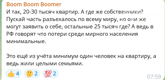 Кроме того, жители задают вопрос о количестве жертв среди мирного населения. Российская пропаганда врет, что они минимальны, но мариупольцы все видели своими глазами и знают, что погибших десятки тысяч.
