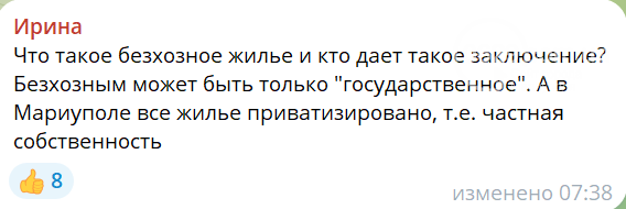 Мариупольцев возмутила эта новость, они напомнили, что жилье приватизировано и рано или поздно найдутся владельцы.