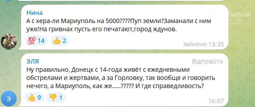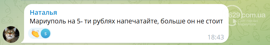 В соцсетях разгорелись жаркие дискуссии. Жители оккупированных еще в 2014 году территорий обиделись, что Донецк на купюре номиналом 1000 рублей, а Мариуполь — 5000 рублей.