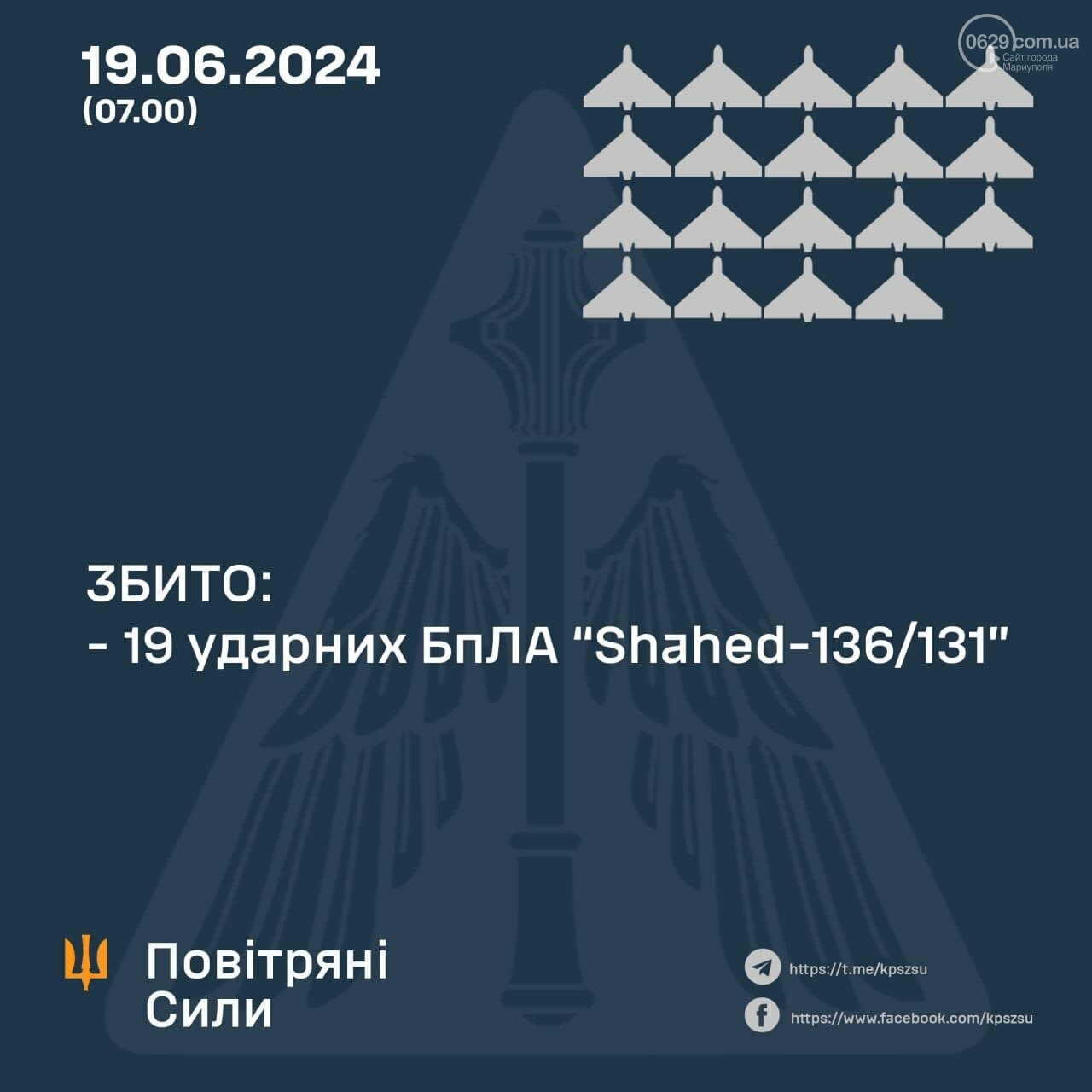 В ночь на 19 июня 2024 года российские оккупанты атаковали 21-им ударным БпЛА типа "Shahed" с направлений Приморско-Ахтарск (рф) и мыс Чауда (ВОТ Крыма).