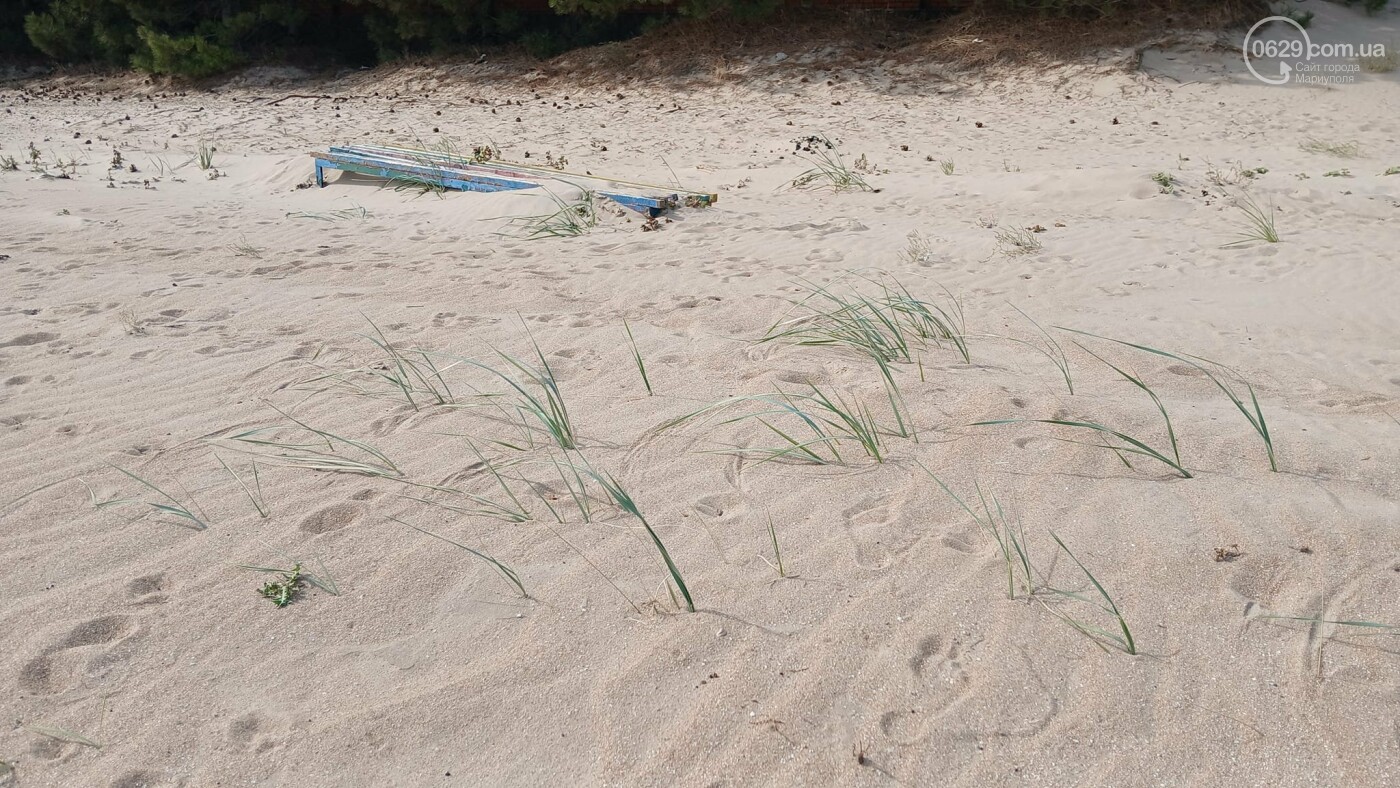 Вот и этот «грибочек» когда-то прикрывал мариупольцев от солнышка, а сейчас — надежная, хотя и не очень эстетичная защита от песка и ветра.
