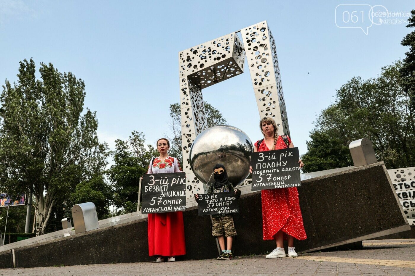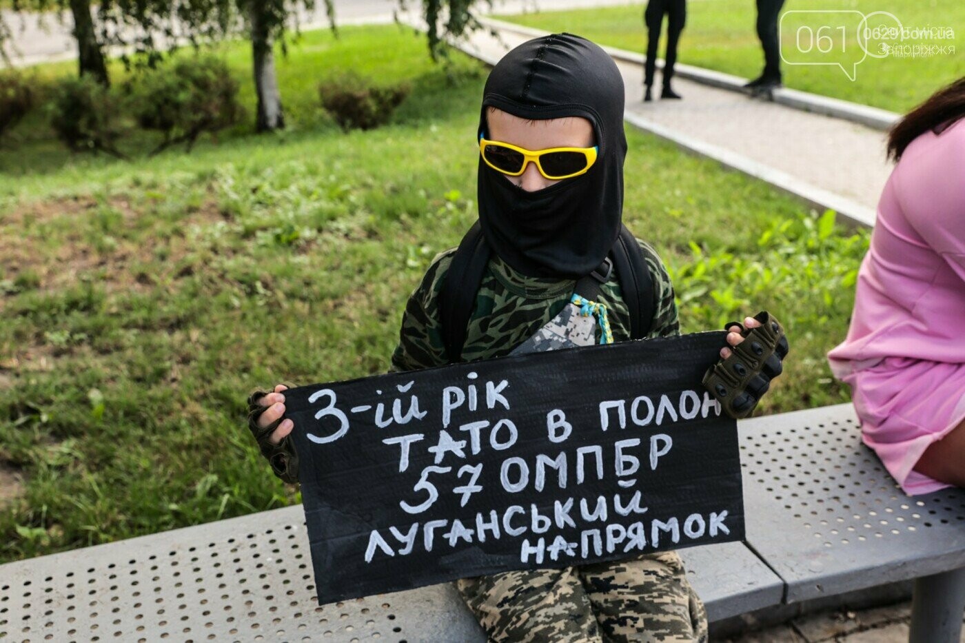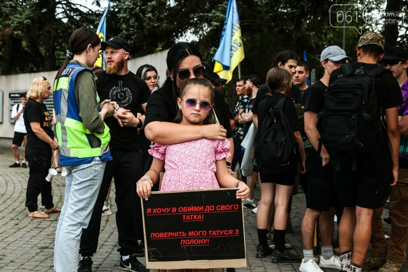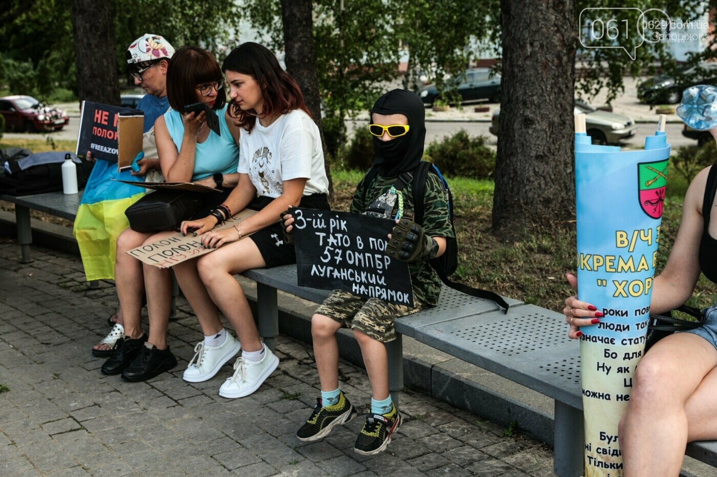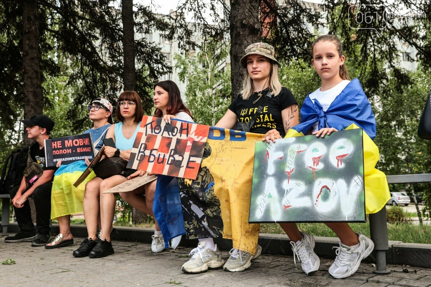 В Запорожье состоялась акция семей военнопленных защитников, чтобы напомнить жителям города о тех, кто уже третий год находится в неволе у россиян. Десятки людей с флагами и плакатами "Free Azov", "Не молчи — плен убивает", "Свободу защитникам Мариуполя", "Стань голосом пленных" стали вдоль дамбы и призвали водителей поддержать их звуковым сигналом. Фото 061.