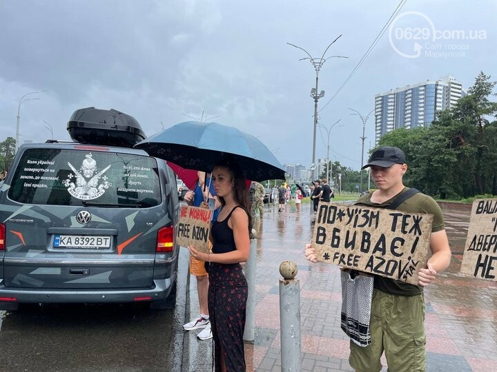 К участникам присоединились киевляне, бывшие пленные, желающие поддержать пленников. В руках митингующие держали фото защитников, плакаты и флаги. Несмотря на ливень люди не расходились. Также проехала автоколонна, которая сигнализировала в поддержку участников акции.