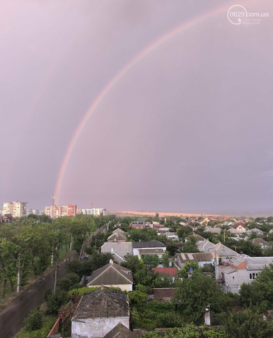 Сегодня в Мариуполе после дождя раскинулась радуга.