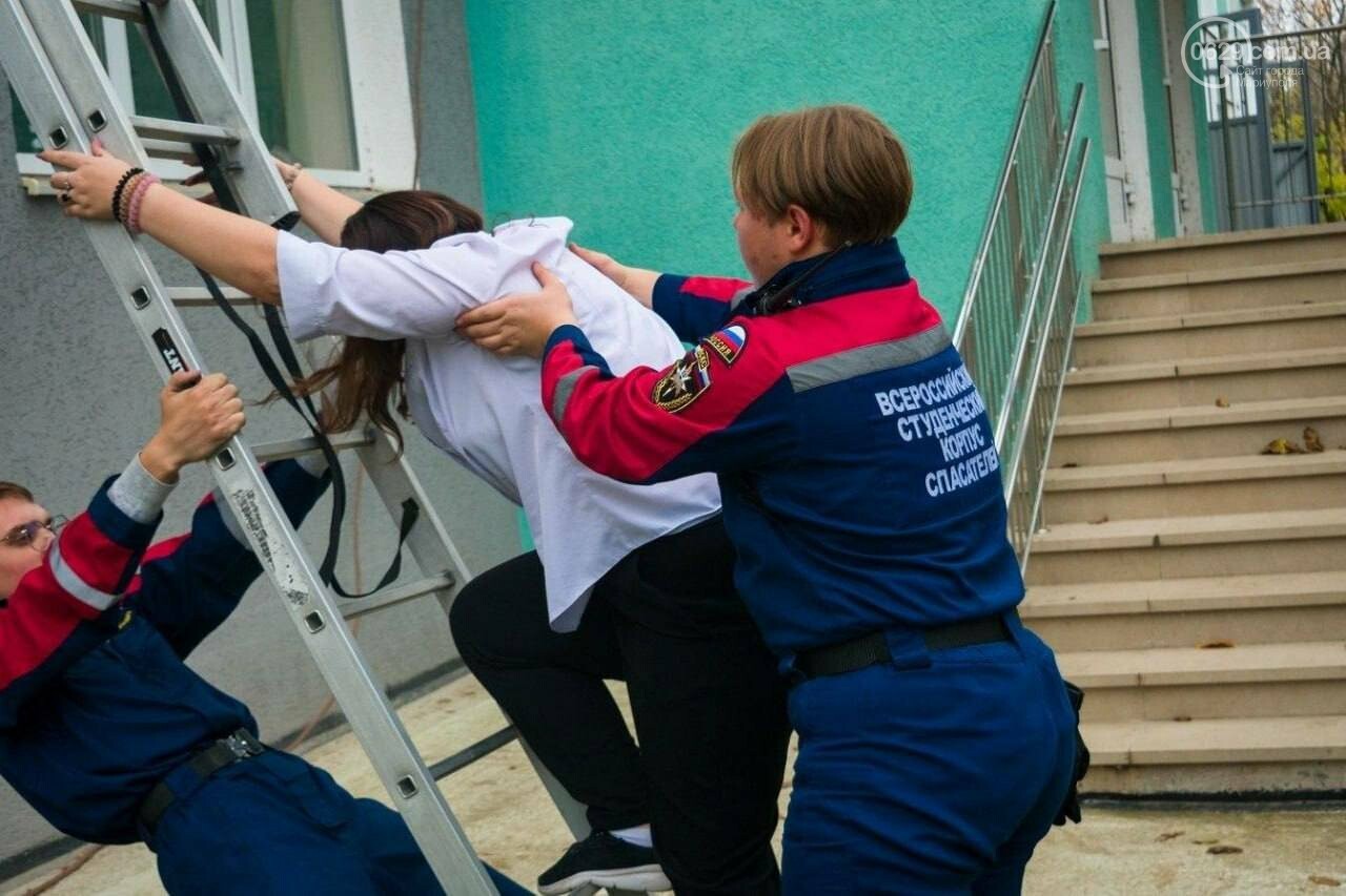 Параллельно в городе действует проект «Школа антитеррора», начатый в сентябре. Как сообщает Мариупольский городской совет, на занятиях детей заставляют отрабатывать сценарии «борьбы с терроризмом»: баррикадироваться в классах, эвакуироваться через окна и даже спускаться со второго этажа по специальной лестнице.