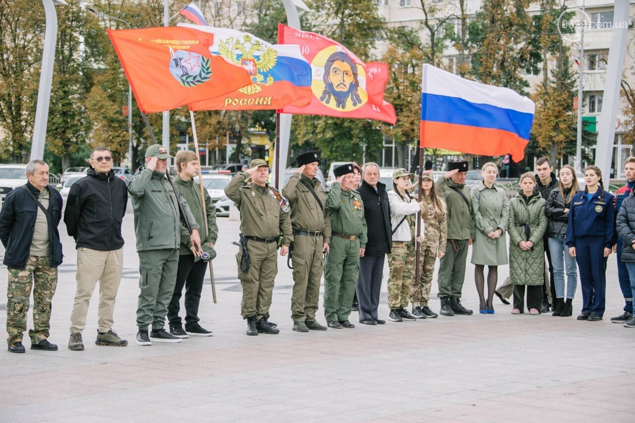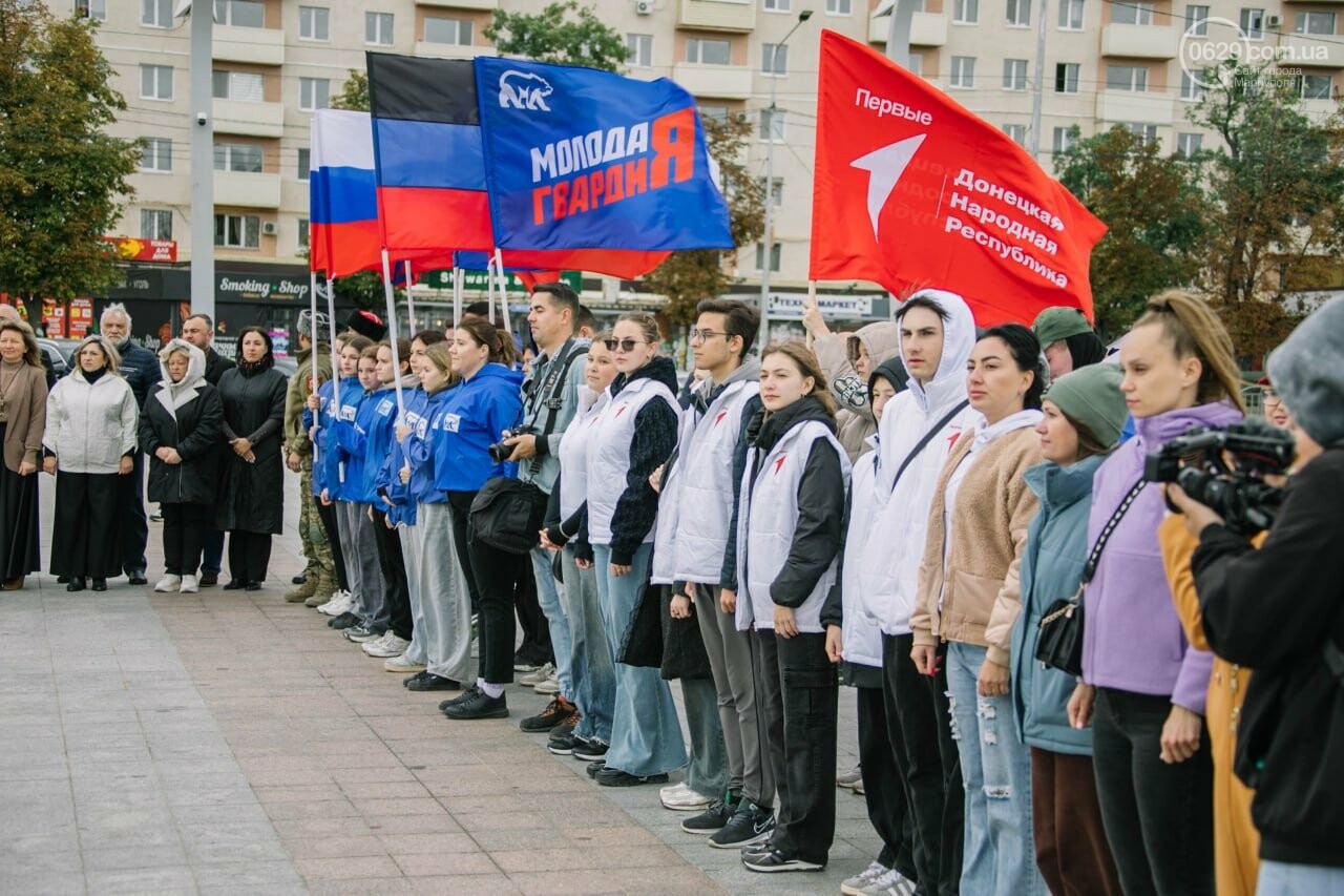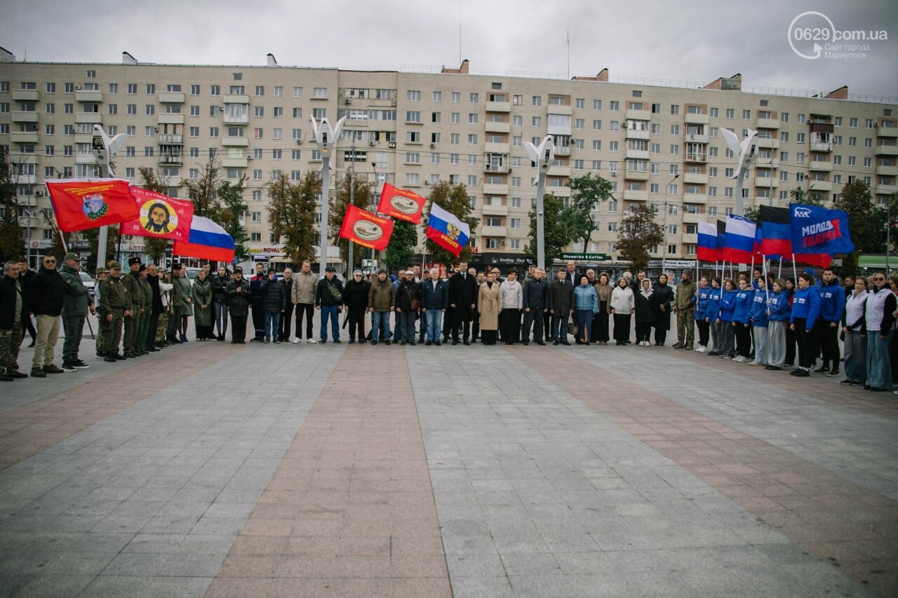 В центре временно оккупированного Мариуполя оккупационная администрация провела так называемую патриотическую акцию по случаю третьей годовщины подписания Кремлем документов о присоединении части украинских территорий к составу РФ.