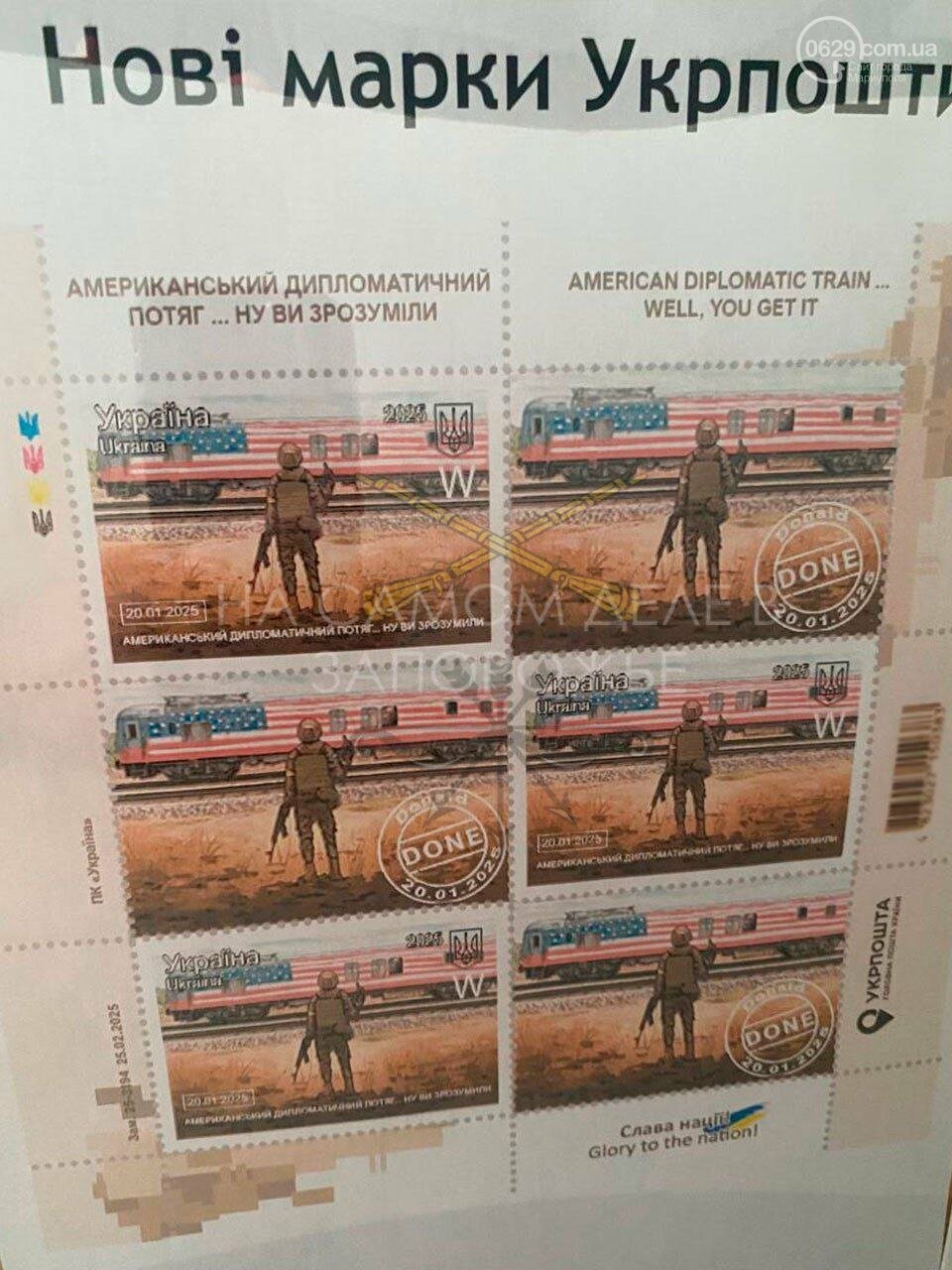 Фейк . Укрпочта выпустила марки, на которых послала за кораблем американский дипломатический поезд.